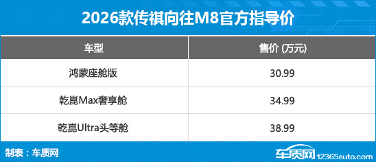 2026新年伊始,在刚刚过去的一周里,2026款传祺向往M8正式上市,新车主要在配置层面进行了优化;锐胜王牌M7也在上周迎来配置上的升级,同时还新增内饰配色,为消费者带来更多选择;一汽丰田则带来了新款bZ3智享家,新车搭载Momenta 5.0辅助驾驶系统,支持ILPP记忆泊车等多项辅助驾驶功能。接下来我们将对上周上市新车进行汇总,看看有没有您喜欢的!